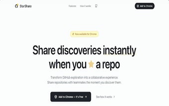 Công cụ này cung cấp thông báo theo thời gian thực cho người nhận, đảm bảo rằng những phát hiện được chia sẻ được thông báo ngay lập tức, do đó nắm bắt được sự phấn khích của những phát hiện mới. StarShare cũng bao gồm một tính năng lịch sử trò chuyện để dễ dàng theo dõi các kho lưu trữ đã chia sẻ, hỗ trợ chế độ tối để đảm bảo tính thẩm mỹ, và hoạt động với sự chú ý đến quyền riêng tư bằng cách sử dụng GitHub OAuth. Tổng thể, nó biến hành động đánh dấu sao thành một trải nghiệm hợp tác hấp dẫn.
